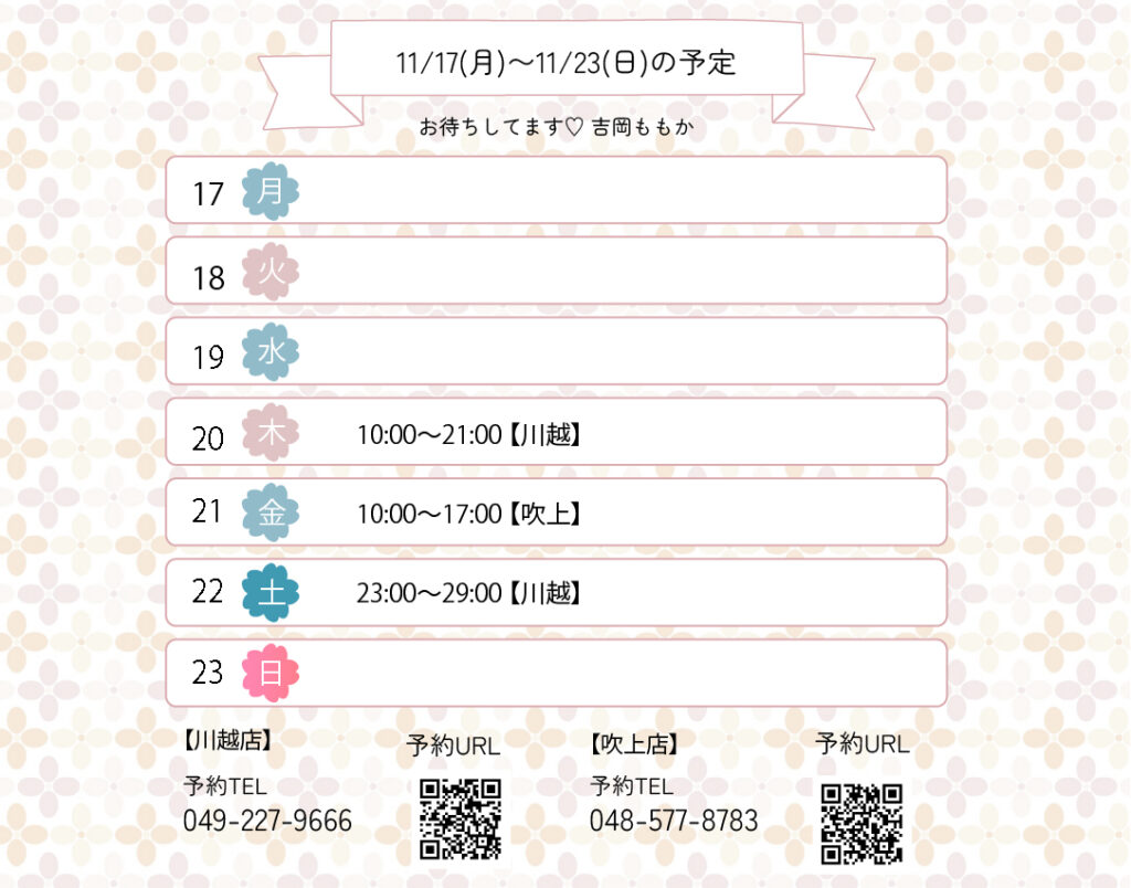 らんぷ川越・吹上でセラピストをしている 吉岡ももか です(*^^*)